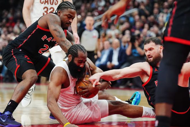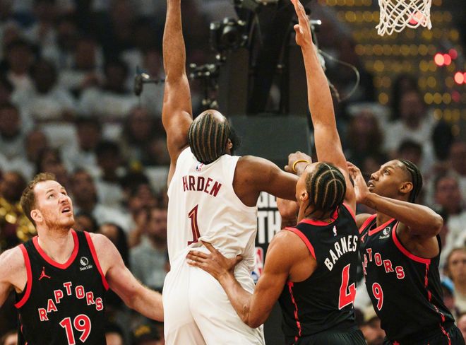 第三,球队季后赛真实命中率值,哈登64.6%队内第三,仅次于斯特鲁斯和梅里尔,而米切尔排名队内第九,只有54.6%。第四,骑士最近三场比赛,包括猛龙两个主场+天王山之战,队内BPM值最低的是米切尔:-5.1,独一档垫底的存在。简单来说,前两场连续30+的高光表现,都被这三场拉没了。回到哈登身上,这轮系列赛5场下来,哈登合计30次失误,场均6次失误,这真怪不了哈登!G1博伊尔斯和谢德的大动作侵犯,G2开始执行区域夹击,到了G3开始,猛龙就直接围堵哈登,哈登场场都是肉搏。