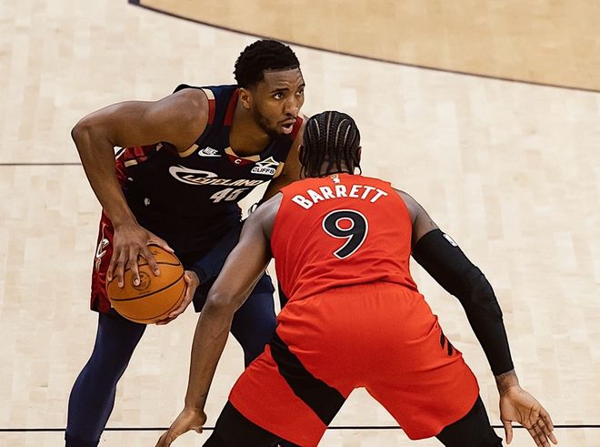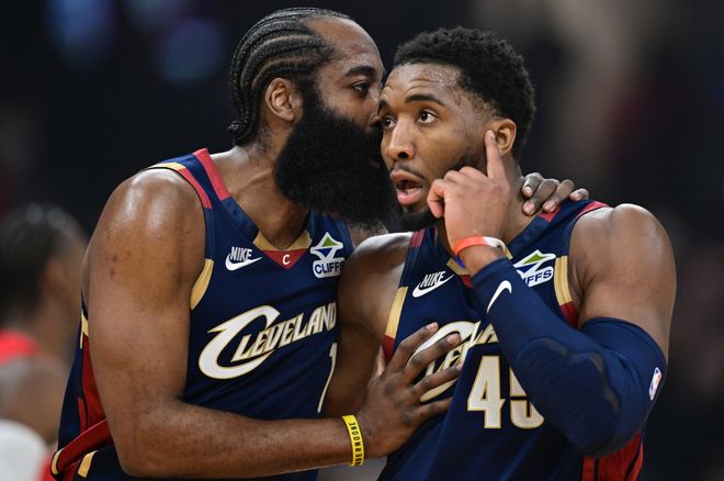 可是到了季后赛,米切尔球权占有率依旧在30.8%,哈登却慢慢升到28.3%。最尴尬的是,对应在场净效率值,米切尔球权占有率在26%是一个警戒线,超过则意味着骑士很难赢球,所以只能哈登持球!那哈登季后赛确实太忙了,持球组织策应发起进攻,在某些特定时间扮演球队主要输出点,场均得分只差米切尔1分;要参与四号位的对抗肉搏,还要享受对方全场夹击的待遇,妥妥打成球队老大。米切尔连续拉胯三场也确实不容易,常规赛带队被猛龙横扫,也是有迹可循,他就是打不了锋线充沛+对抗属性拉满的球队。
