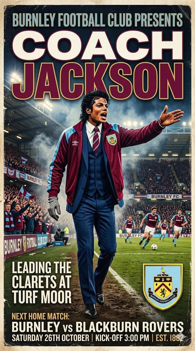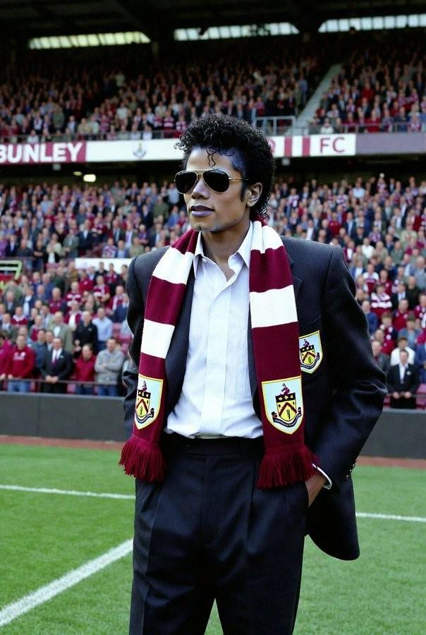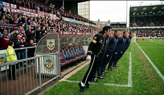 网友将迈克尔-杰克逊经典的45度前倾动作P进了伯恩利的教练席,以及迈克尔-杰克逊在伯恩利教练席指挥图。